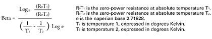 热敏电阻的材料常数。除非另有说明,否则β值由0°和50°C温度下测得的热敏电阻的电阻值推导出。